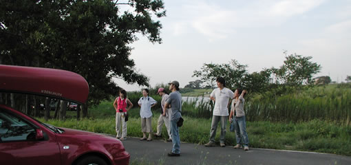 乗用車に乗ったおじさんが10メートルほどはなれたところに車を停め、降りてくるとおもむろに茂みを覗き込んでいる。数分後、わたしたちの前を通り抜けるときに声をかけて行った。